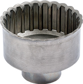 Possible to flow form complex shape by single chucking with generating metal flow positively. Spline forming without machining, hub forming without welding are the most typical process. Also it is possible to control the material thickness of the specified portion partially for weight reduction and material saving.