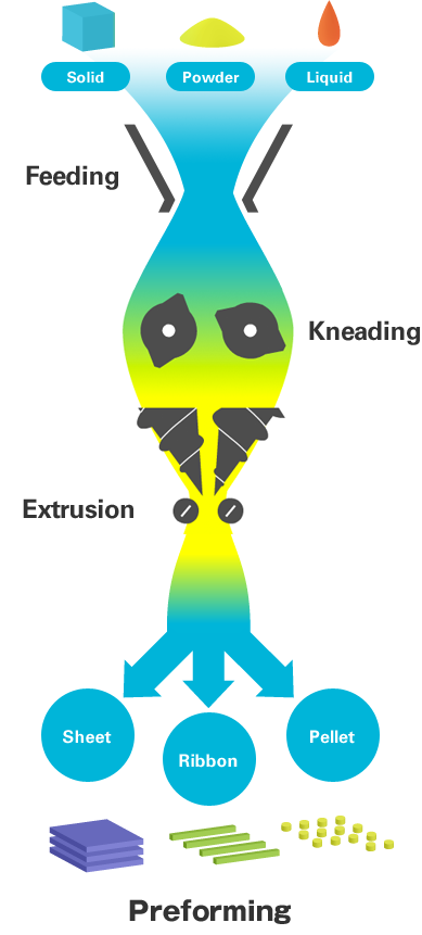 The science & technology behind kneading processes is highly subtle and complex, with results varying according to the materials and process conditions. New materials of today & tomorrow can be mixed in unlimited combination and for an endless array of applications.