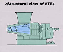 The twin taper screw extruder combines dies with MS-type twin taper screws. Material is extruded by the dies attached to the head of the twin taper screws. This makes the 2TE highly effective for extruding soft materials such as adhesive, tackifier and silicone rubber.