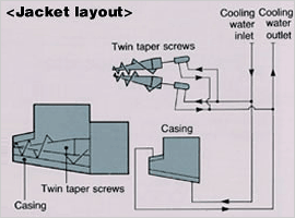 The MS-type twin taper screws and the casing do not contact, thereby reducing heat generation.