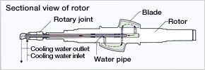 The innovative structure of the jacket allows sensitive adjustment of the mixed material’s temperature. Even materials which are difficult or impossible for conventional mixers to process can be mixed easily at low temperatures.- The jacket structure helps stabilize and control the material’s temperature so as to prevent thermal deterioration. Material mixing is performed at the optimum temperature.